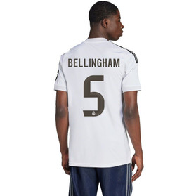 All Bellingham shirts come with official player printing used in real games. This is identifiable by the high-quality, licensed details guaranteed by Real Madrid and adidas. The name BELLINGHAM appears in capital letters across the upper back, with the iconic number 5 below. Bellingham wears number 5 in tribute to his football idol, Zinedine Zidane, who once wore the same number in his playing days.